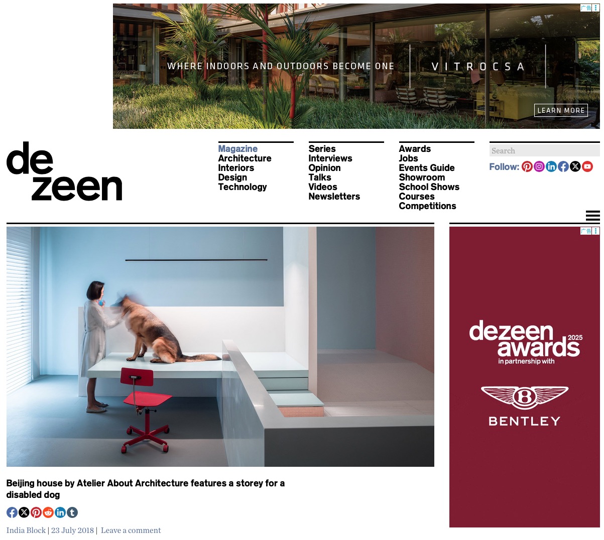 Dezeen: Atelier About Architecture features a storey for a disabled dog