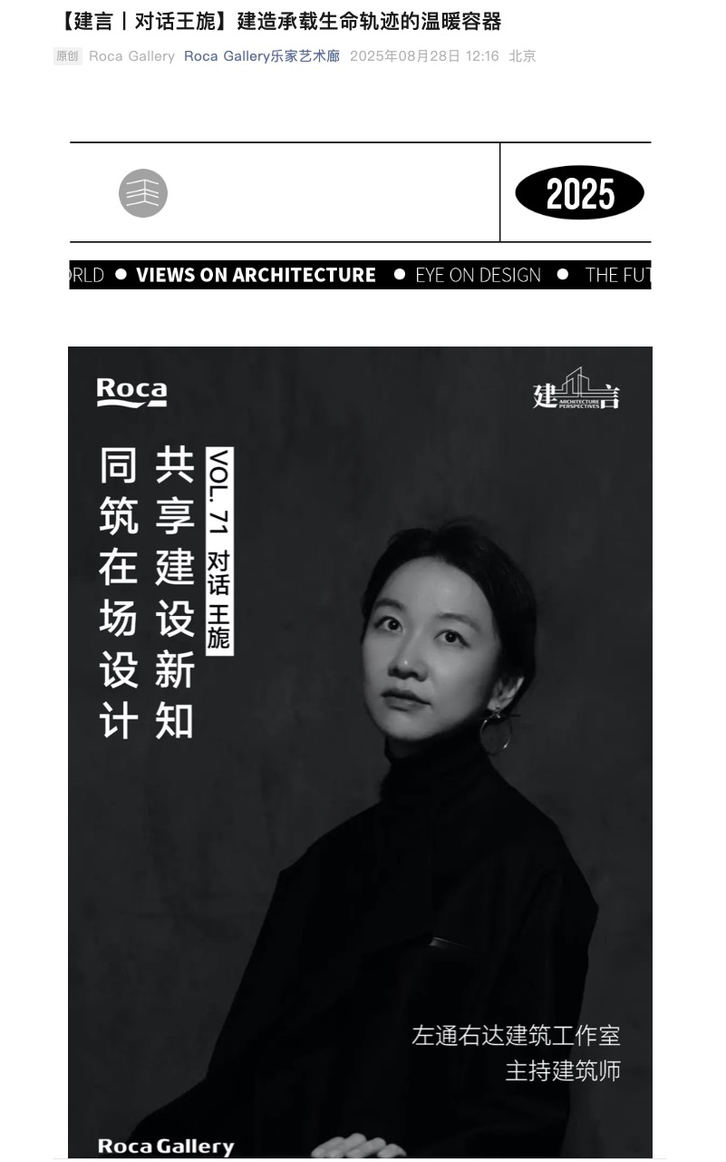 Roca Gallery:【建言丨对话王旎】建造承载生命轨迹的温暖容器